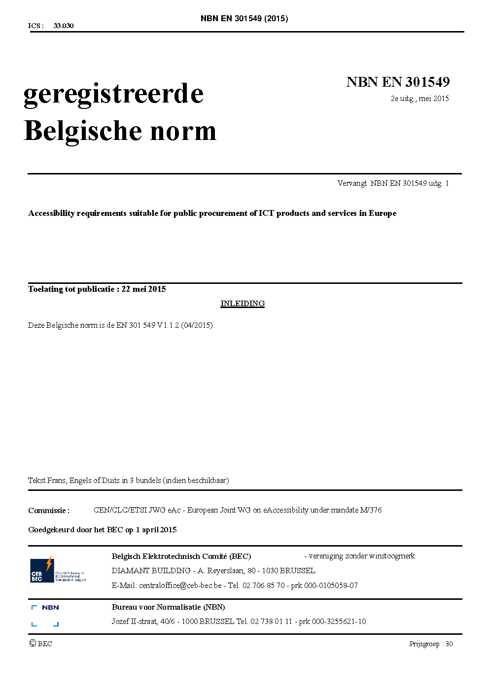 | Publisher | Bureau de Normalisation Belge (NBN) |