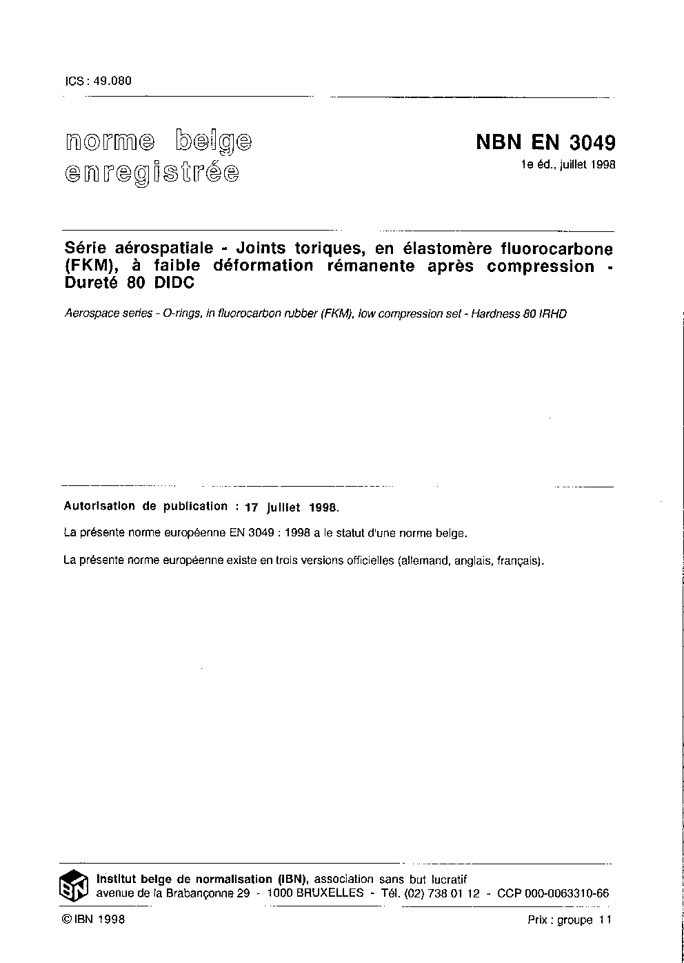 NBN EN 3049:1998