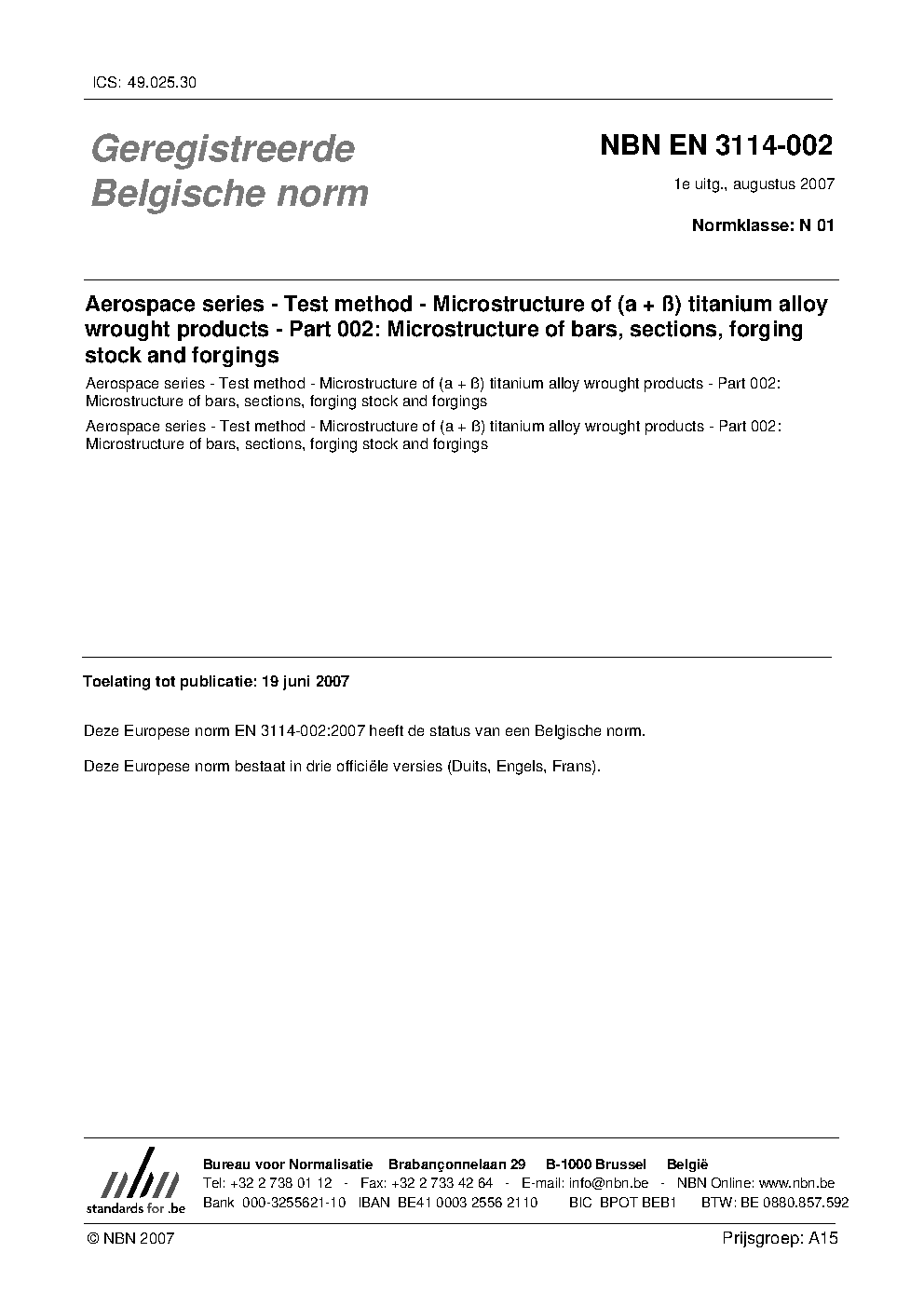 | Publisher | Bureau de Normalisation Belge (NBN) |
