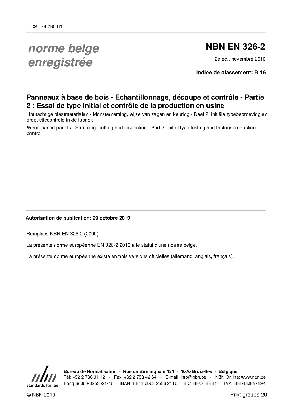 | Publisher | Bureau de Normalisation Belge (NBN) |