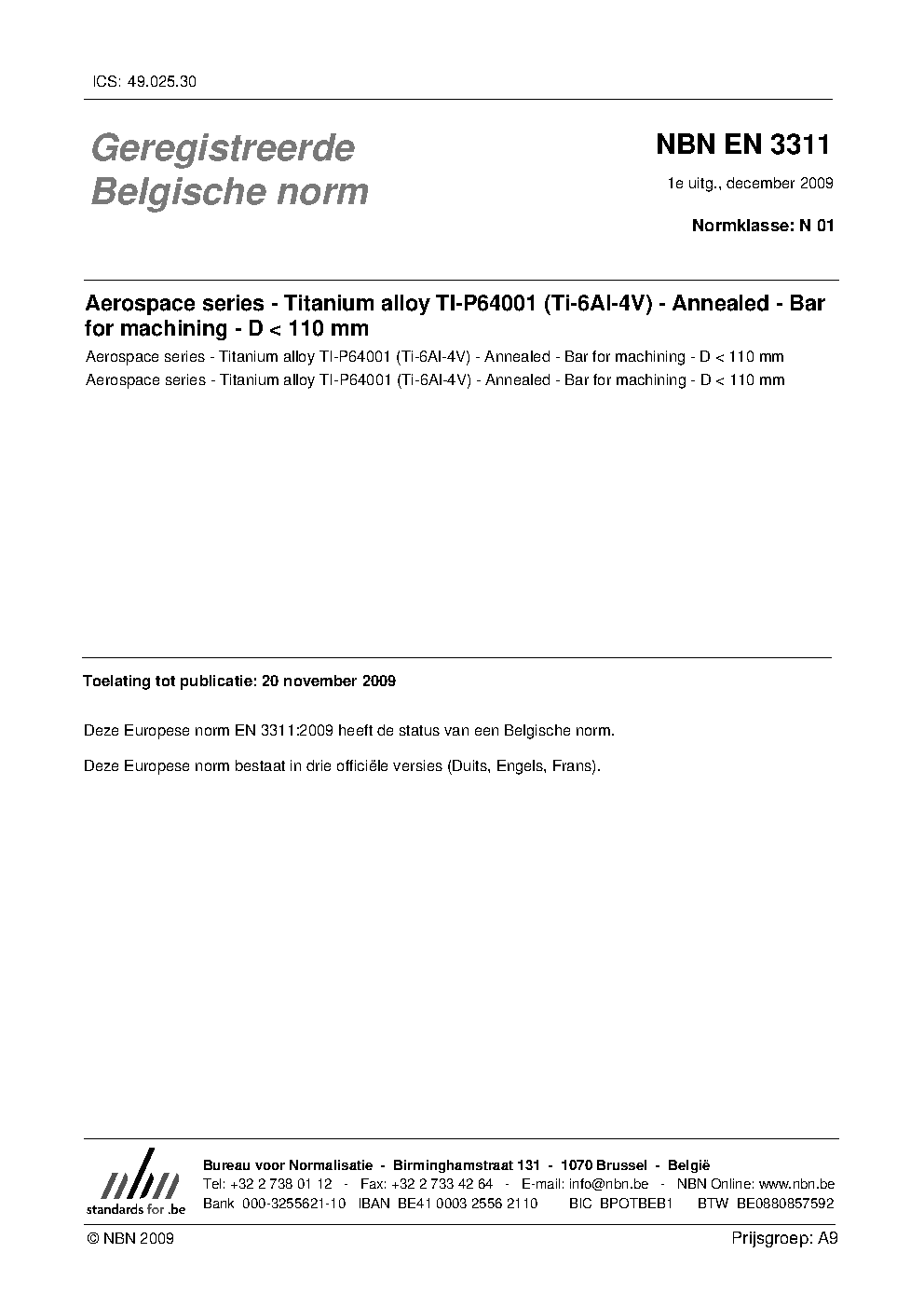 NBN EN 3311:2009