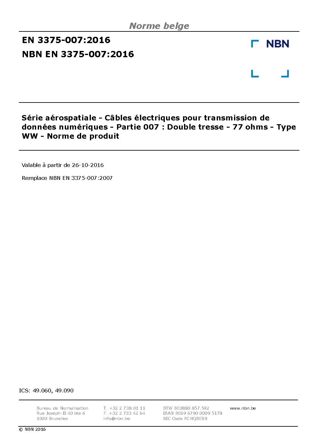| Publisher | Bureau de Normalisation Belge (NBN) |