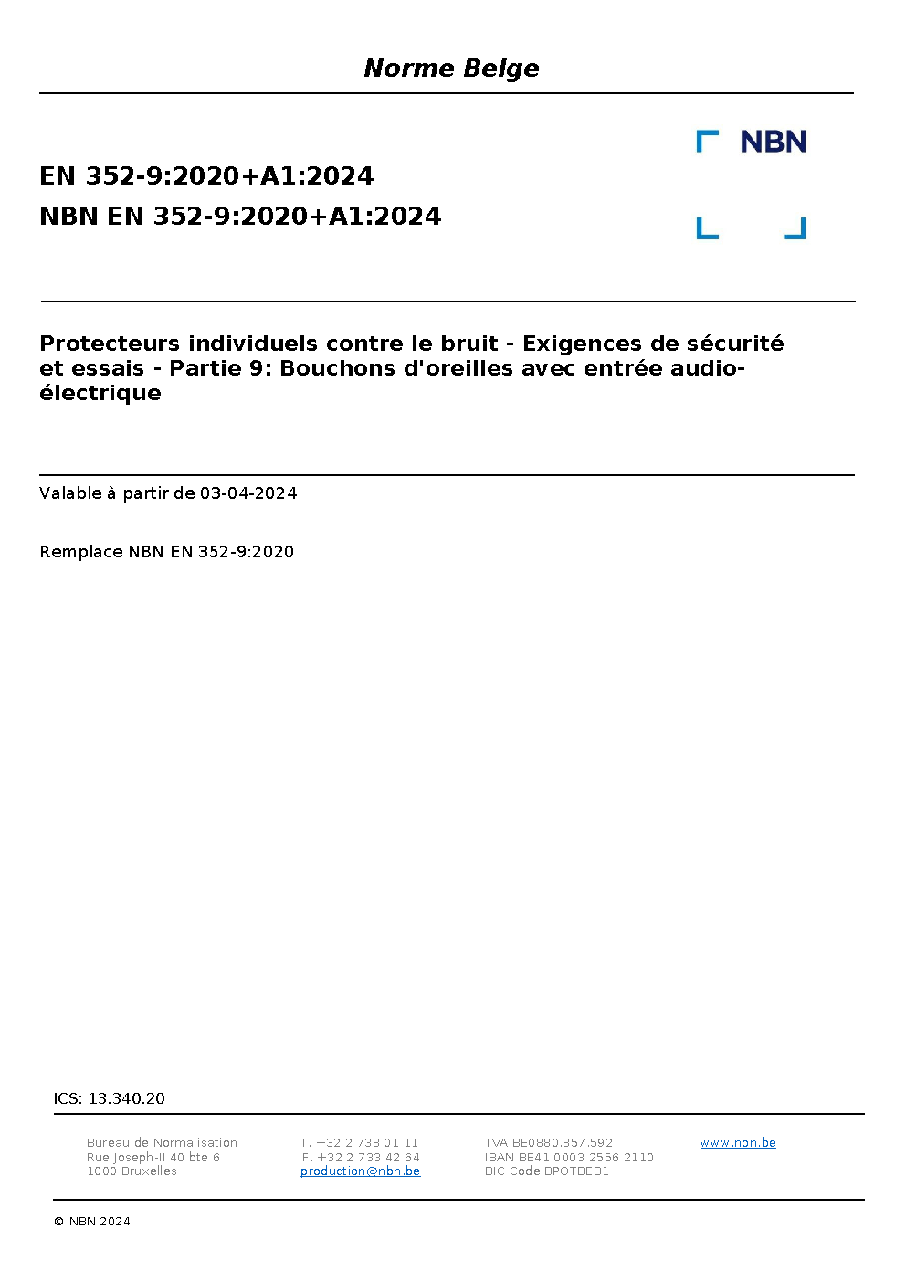 NBN EN 352-9:2020+A1:2024