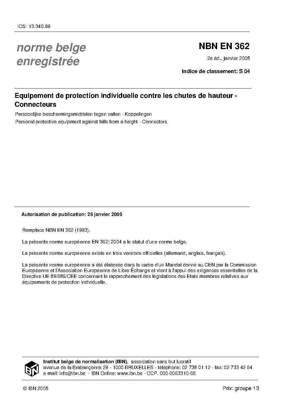 NBN EN 362:2005