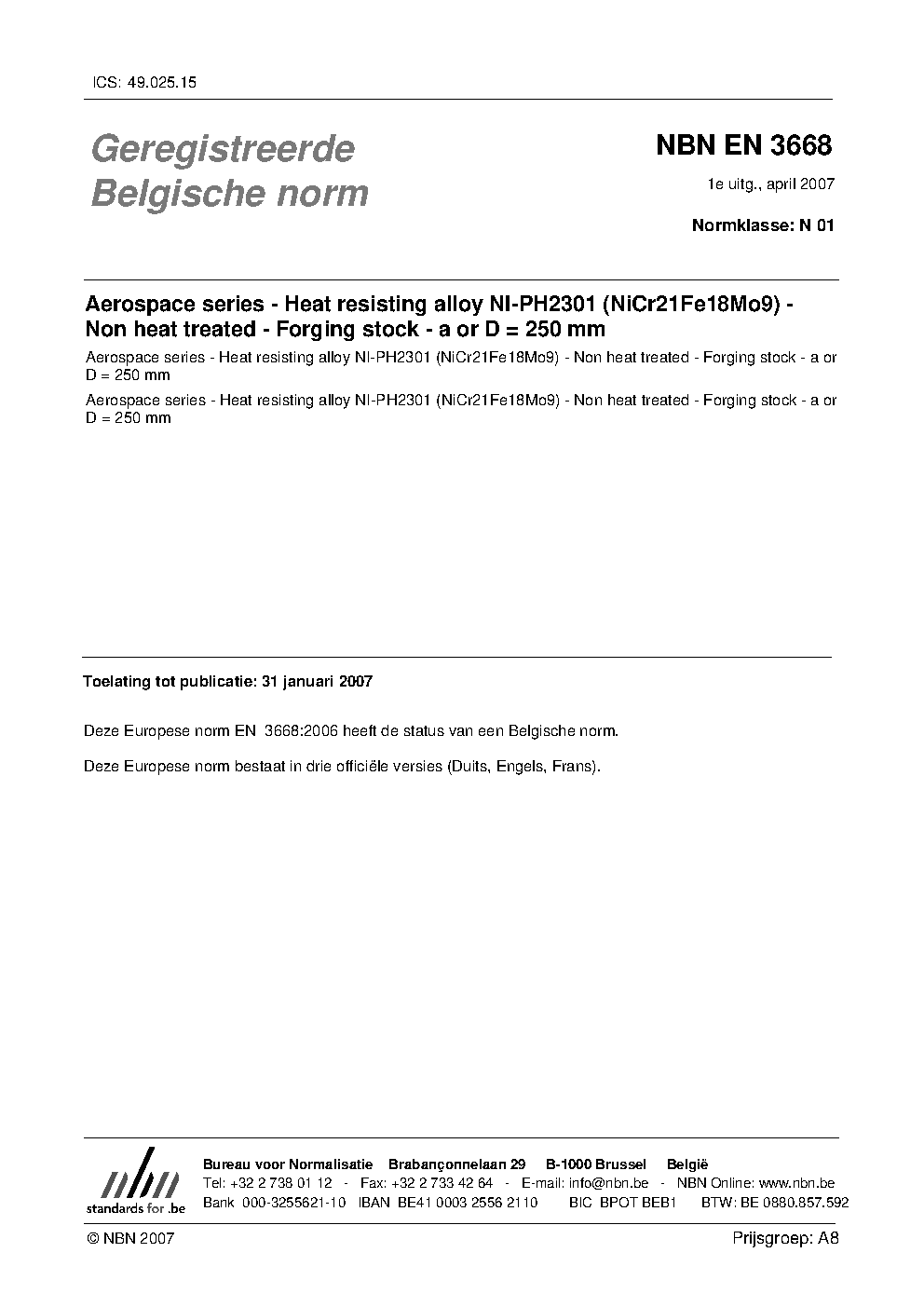 NBN EN 3668:2007