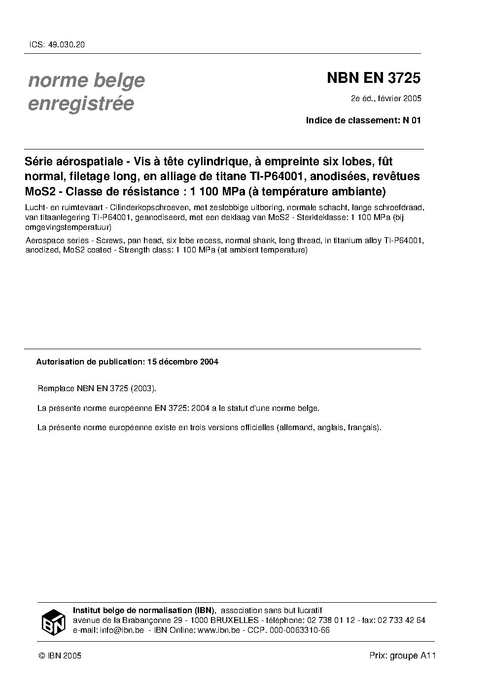 NBN EN 3725:2005
