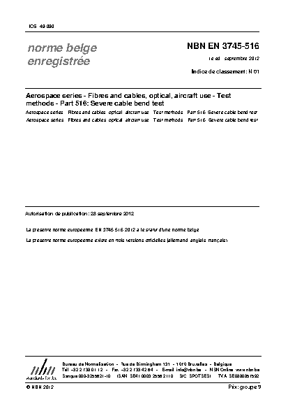 Aerospace series - Fibres and cables, optical, aircraft use - Test methods - Part 516: Severe cable bend test