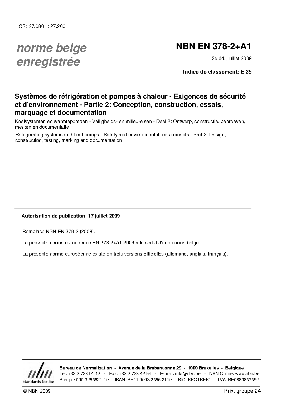 | Publisher | Bureau de Normalisation Belge (NBN) |