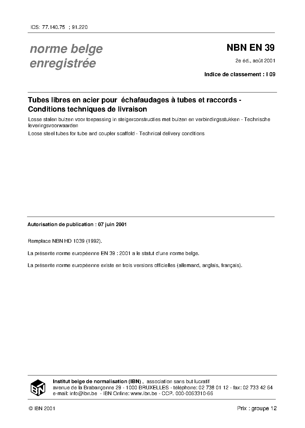 | Publisher | Bureau de Normalisation Belge (NBN) |