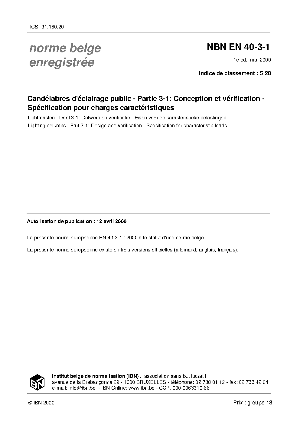 NBN EN 40-3-1:2000