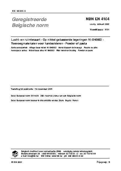 | Publisher | Bureau de Normalisation Belge (NBN) |