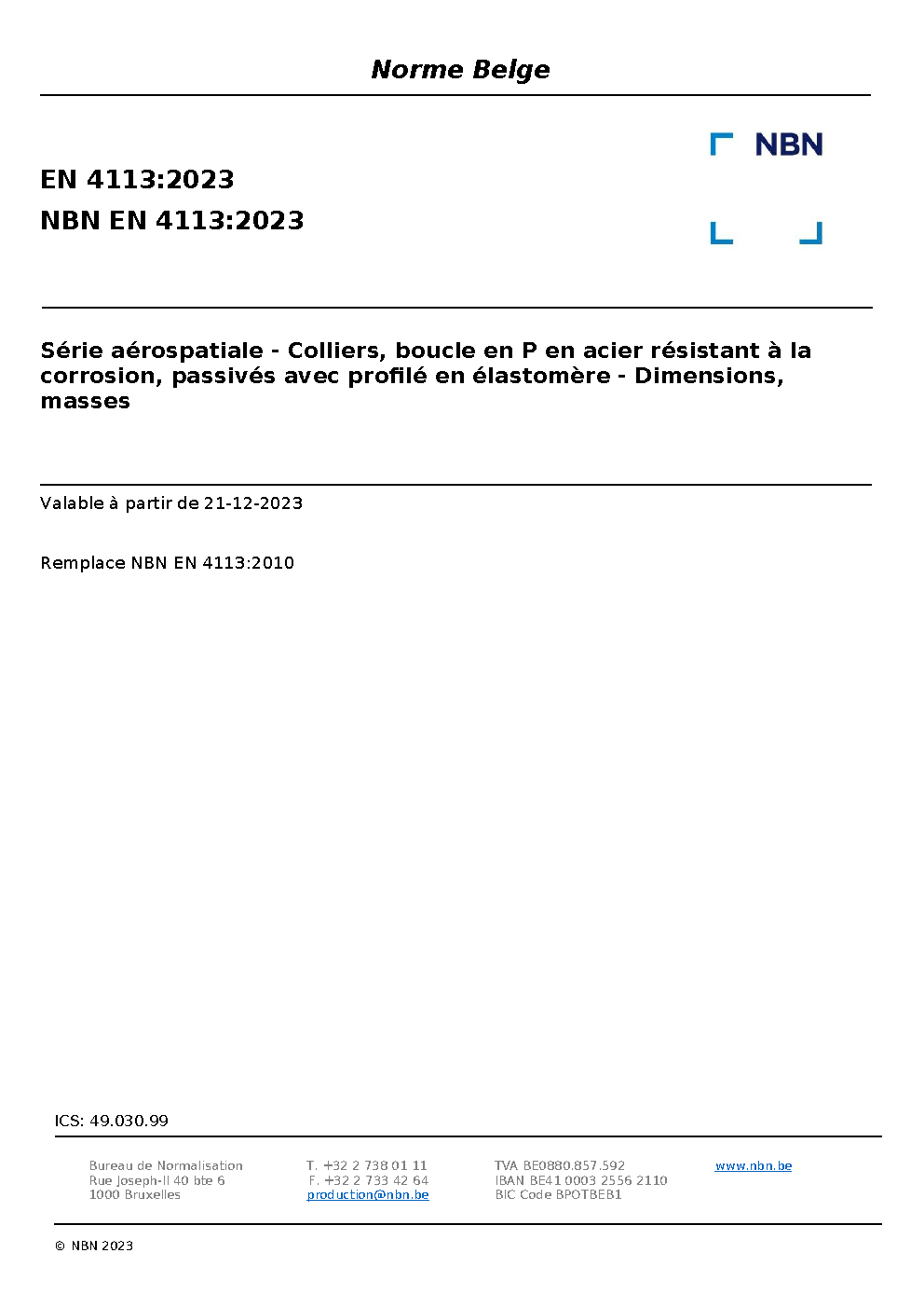 | Publisher | Bureau de Normalisation Belge (NBN) |