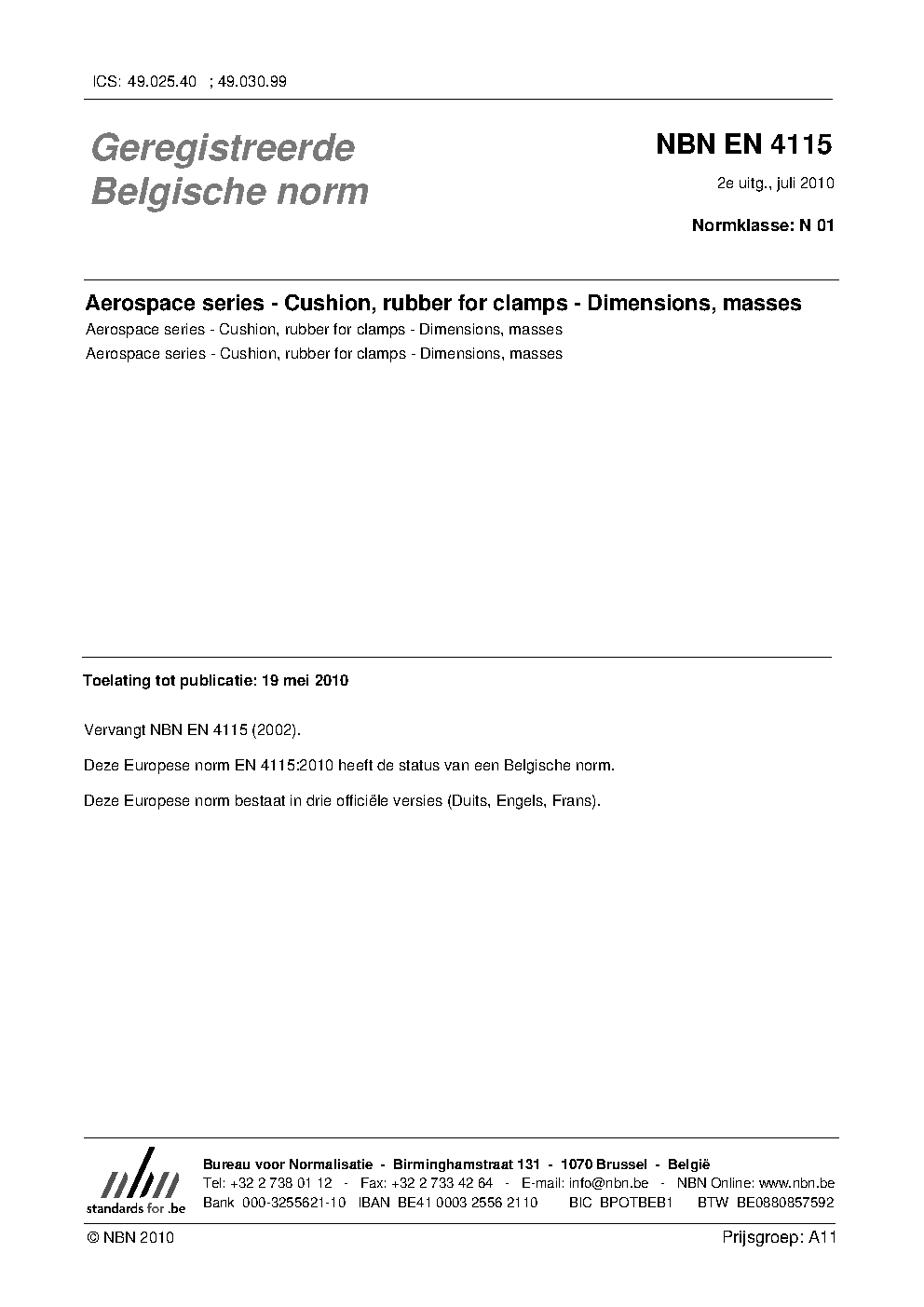 | Publisher | Bureau de Normalisation Belge (NBN) |