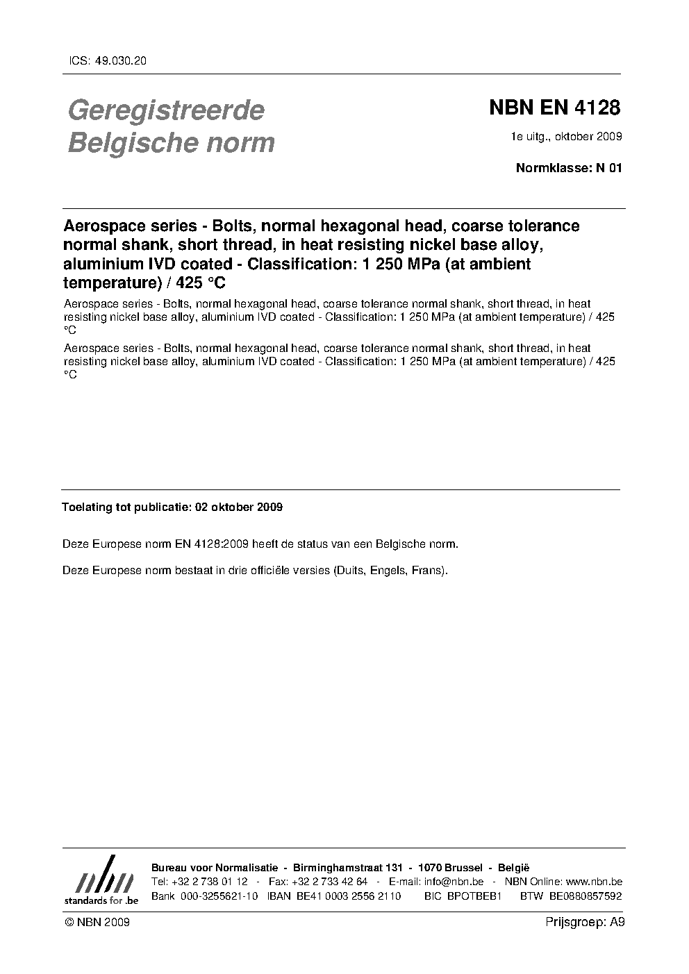 | Publisher | Bureau de Normalisation Belge (NBN) |