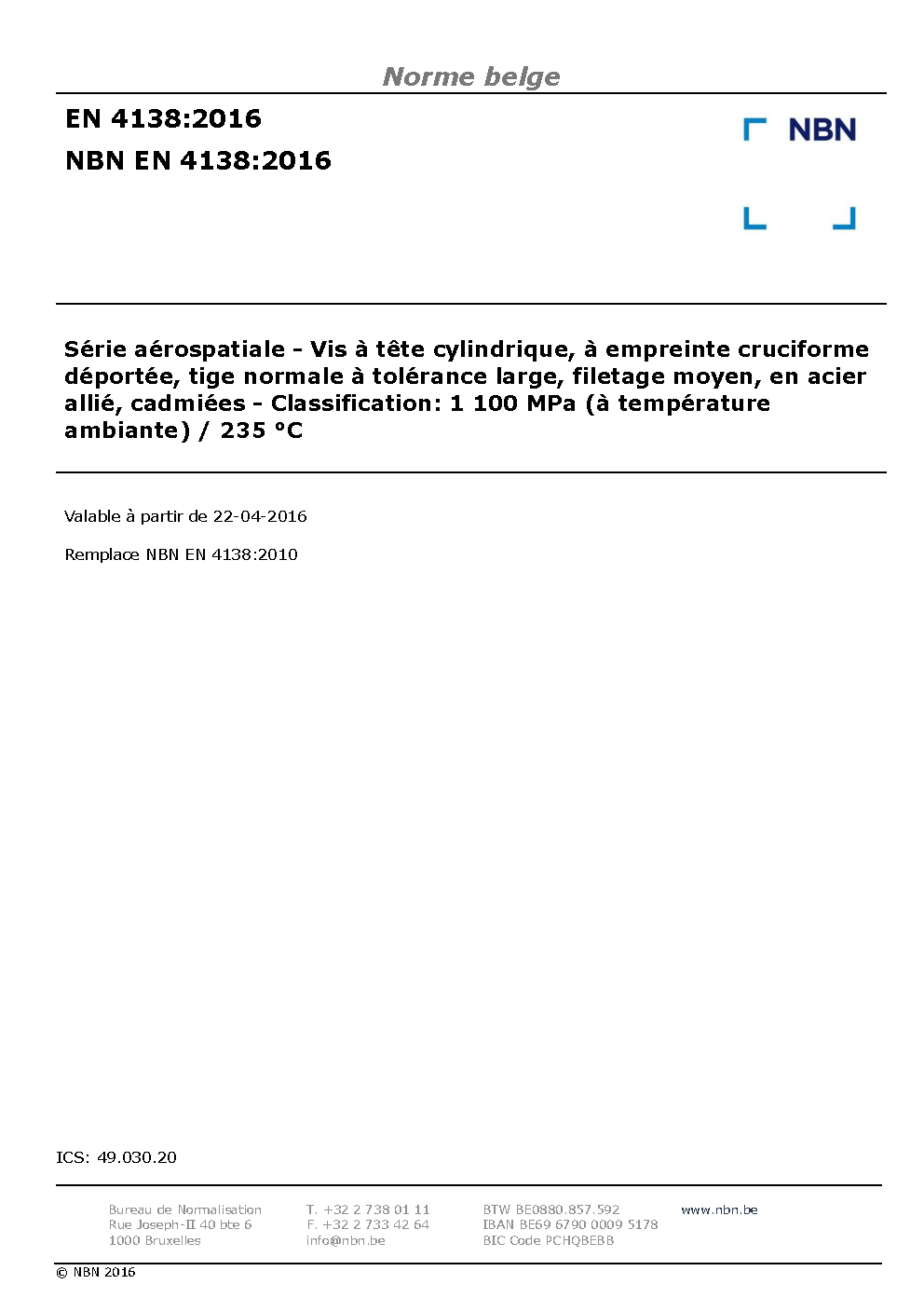 NBN EN 4138:2016