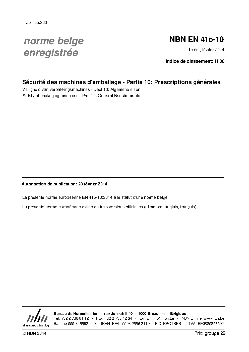 | Publisher | Bureau de Normalisation Belge (NBN) |