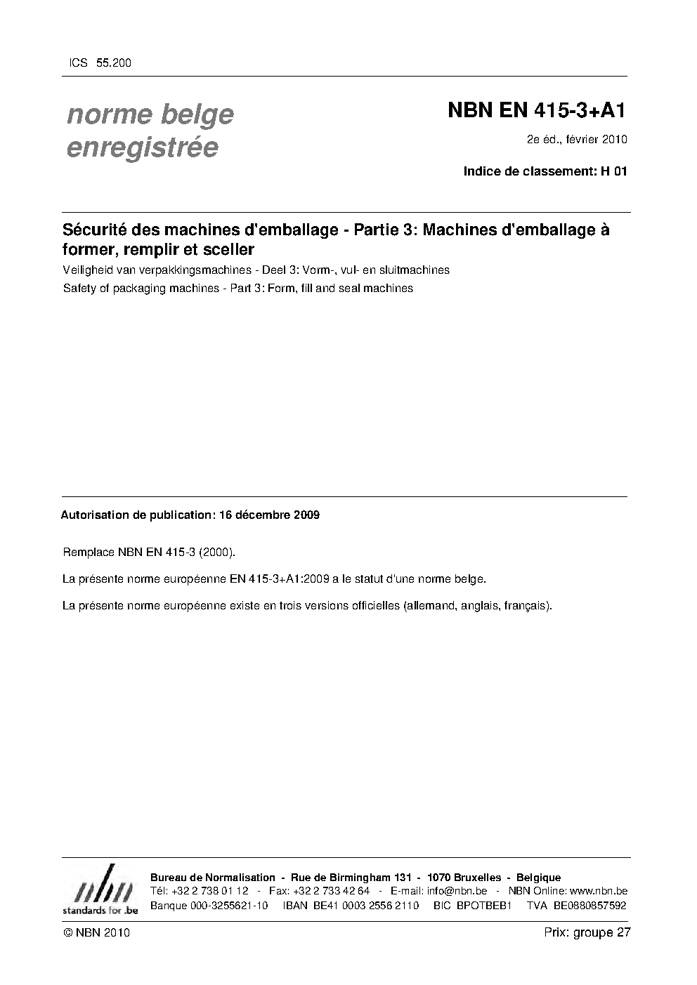 | Publisher | Bureau de Normalisation Belge (NBN) |