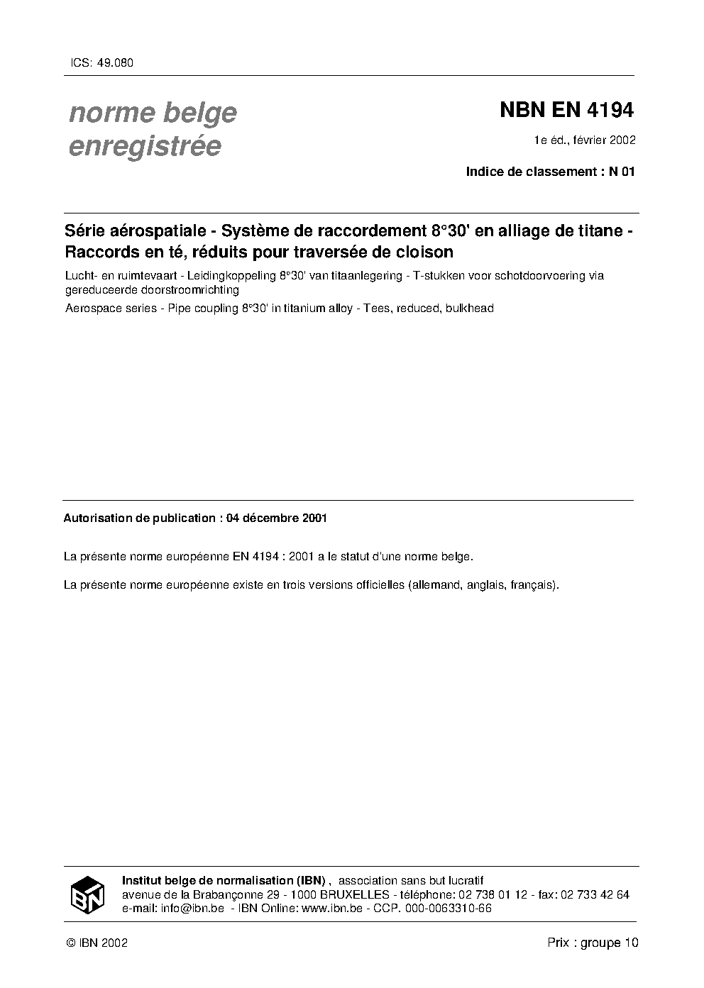 | Publisher | Bureau de Normalisation Belge (NBN) |