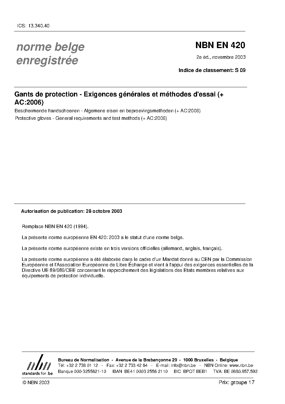 NBN EN 420:2003