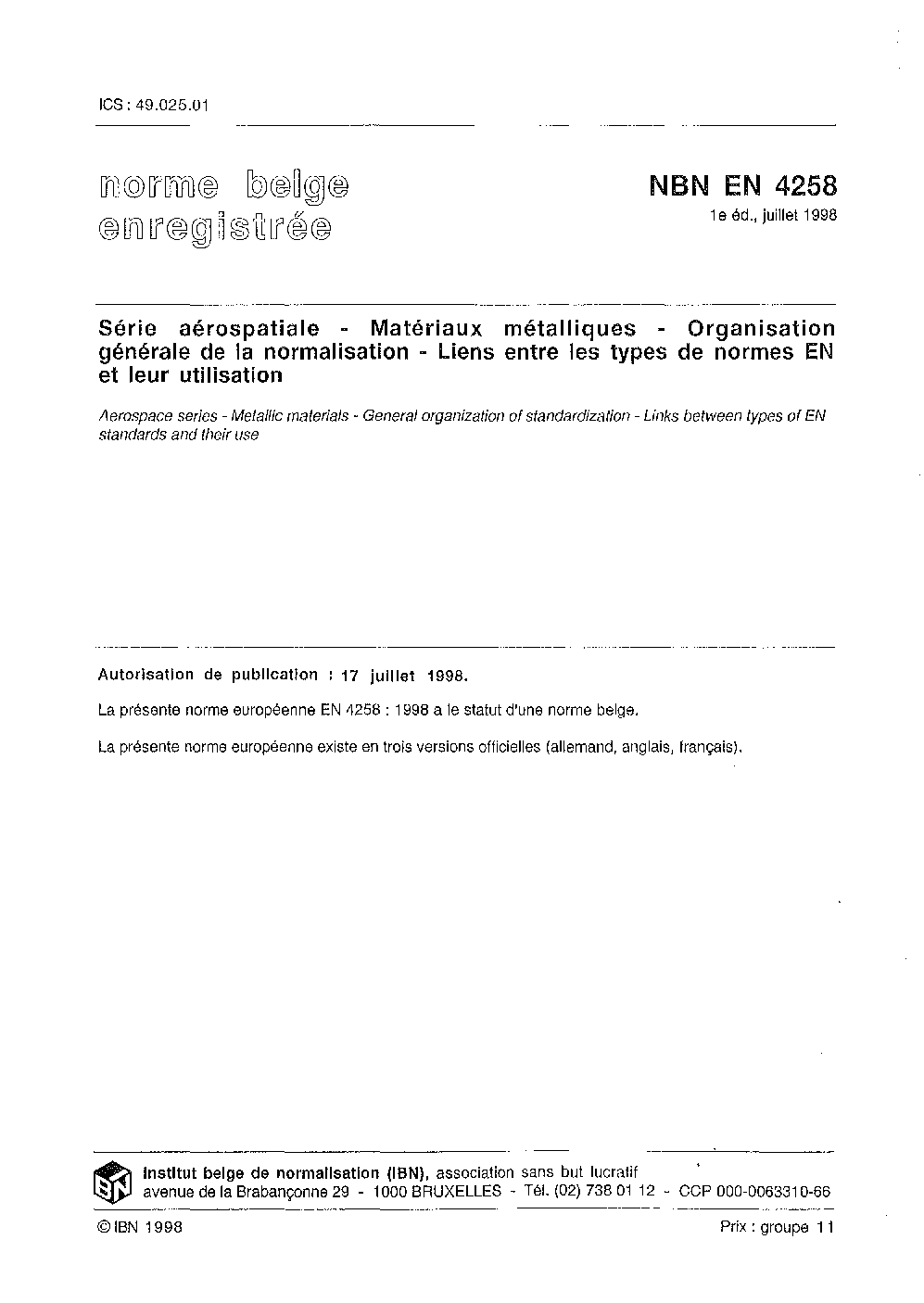 | Publisher | Bureau de Normalisation Belge (NBN) |