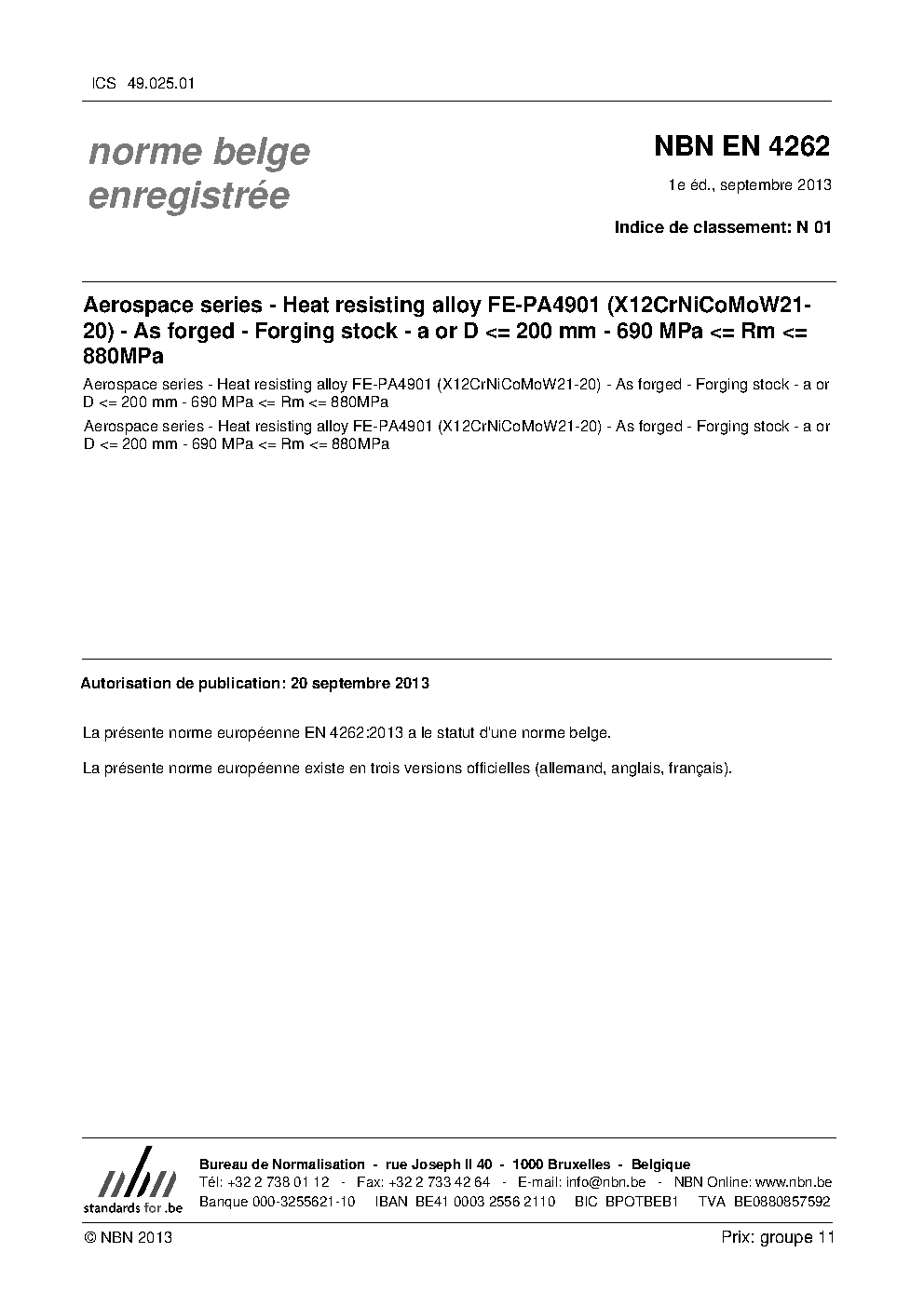 | Publisher | Bureau de Normalisation Belge (NBN) |