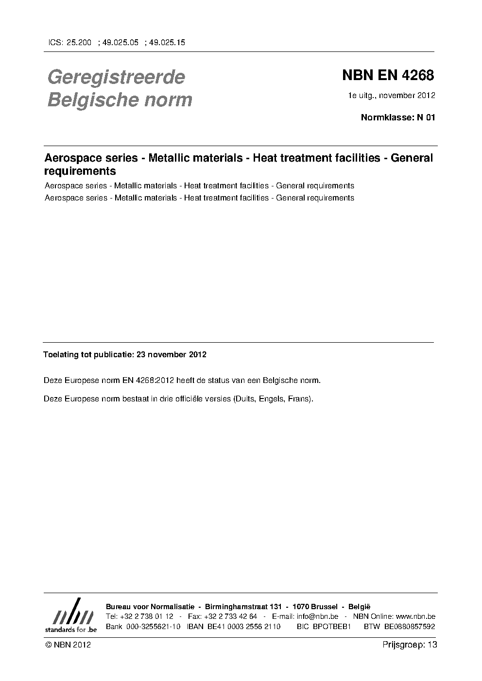 | Publisher | Bureau de Normalisation Belge (NBN) |