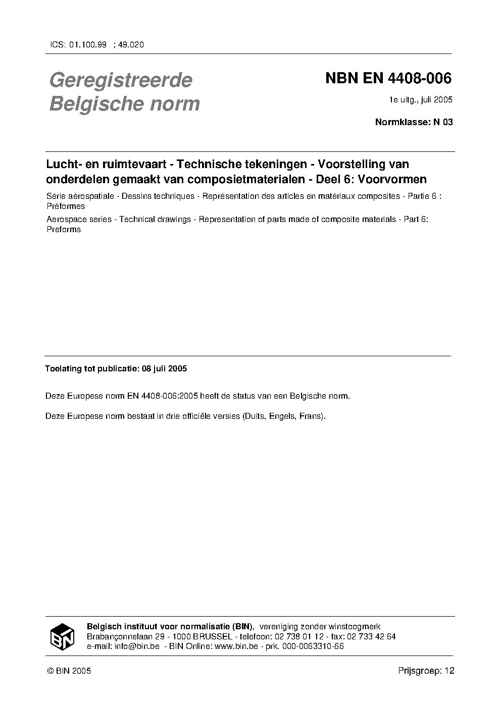 | Publisher | Bureau de Normalisation Belge (NBN) |
