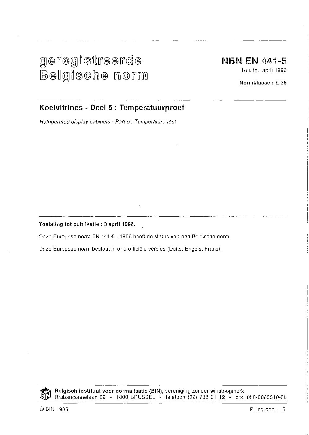 | Publisher | Bureau de Normalisation Belge (NBN) |