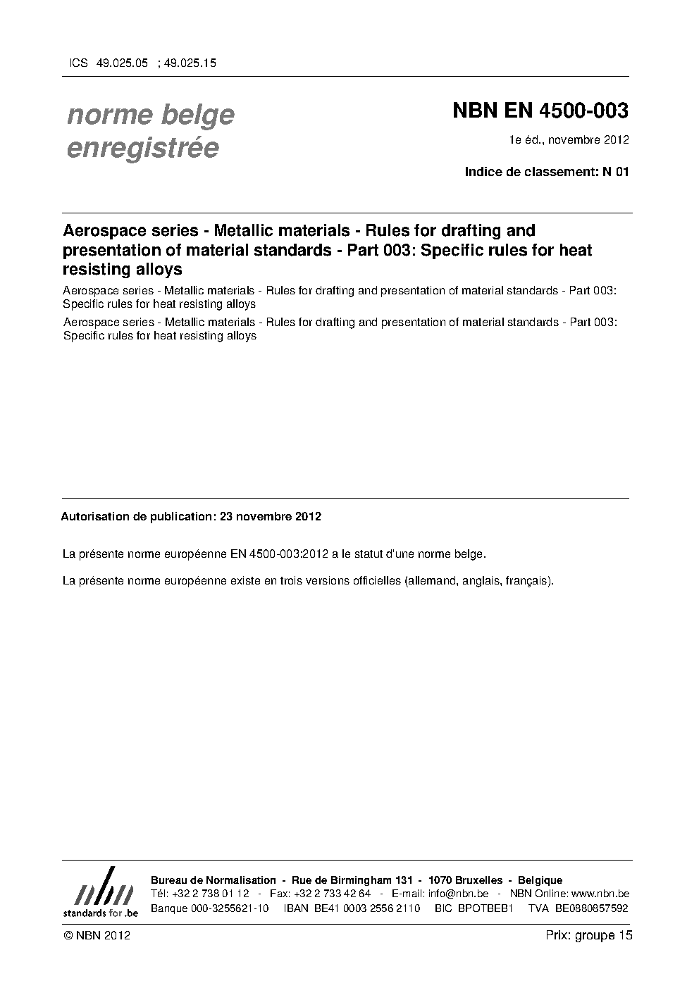 | Publisher | Bureau de Normalisation Belge (NBN) |