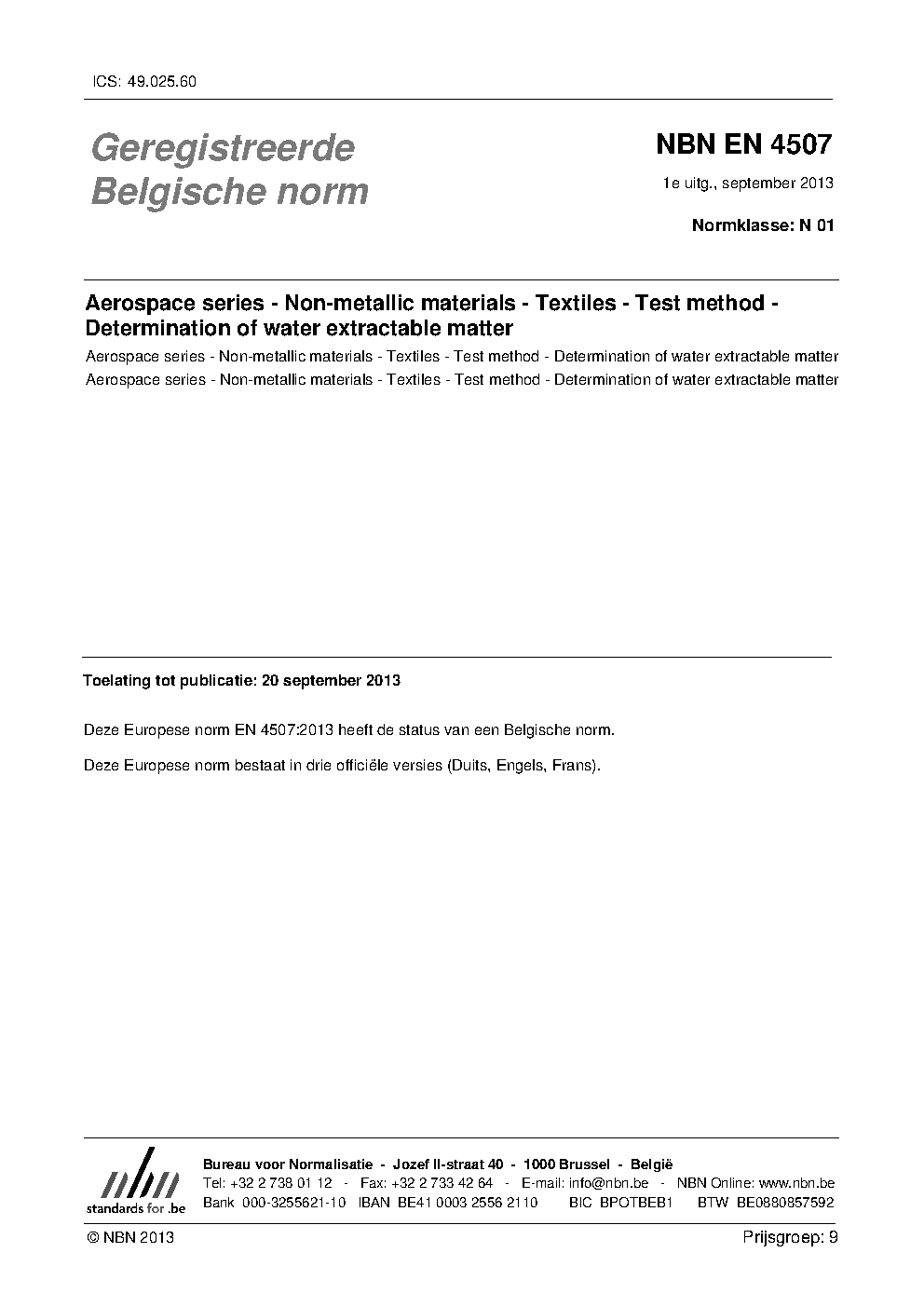 | Publisher | Bureau de Normalisation Belge (NBN) |