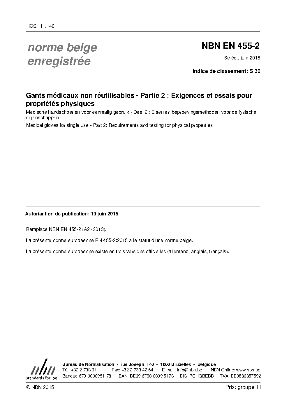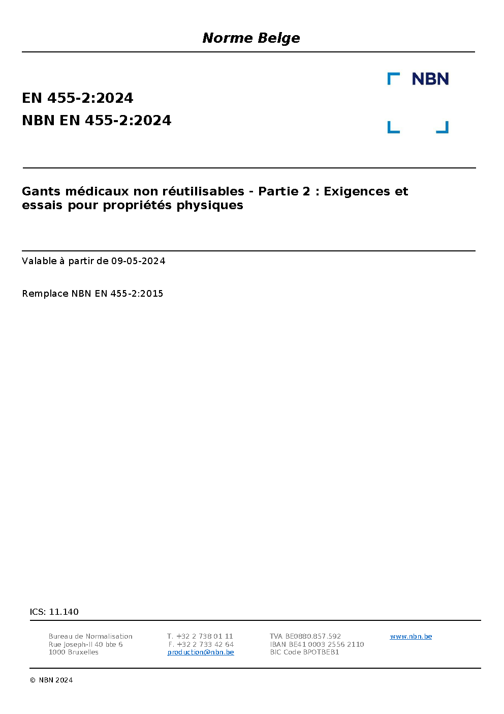 | Publisher | Bureau de Normalisation Belge (NBN) |