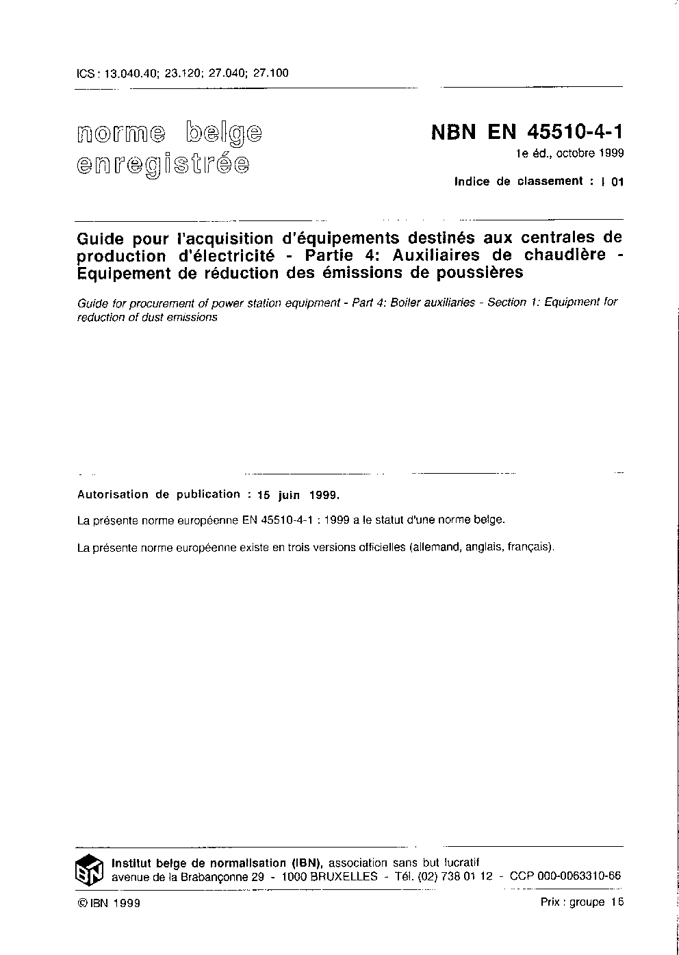 | Publisher | Bureau de Normalisation Belge (NBN) |
