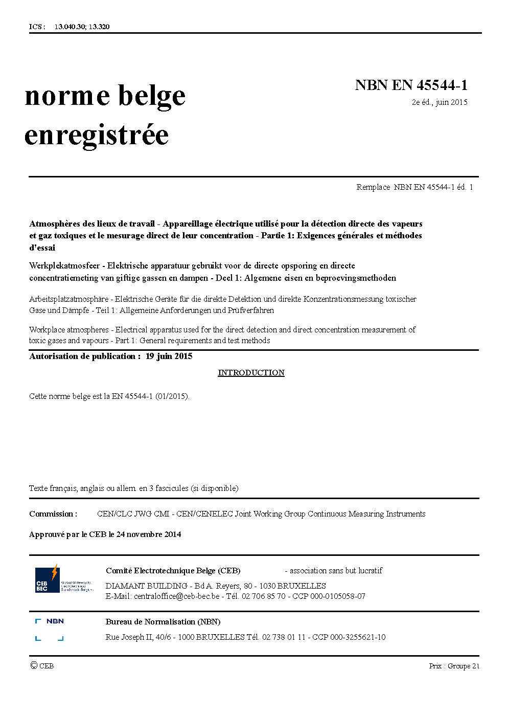| Publisher | Bureau de Normalisation Belge (NBN) |