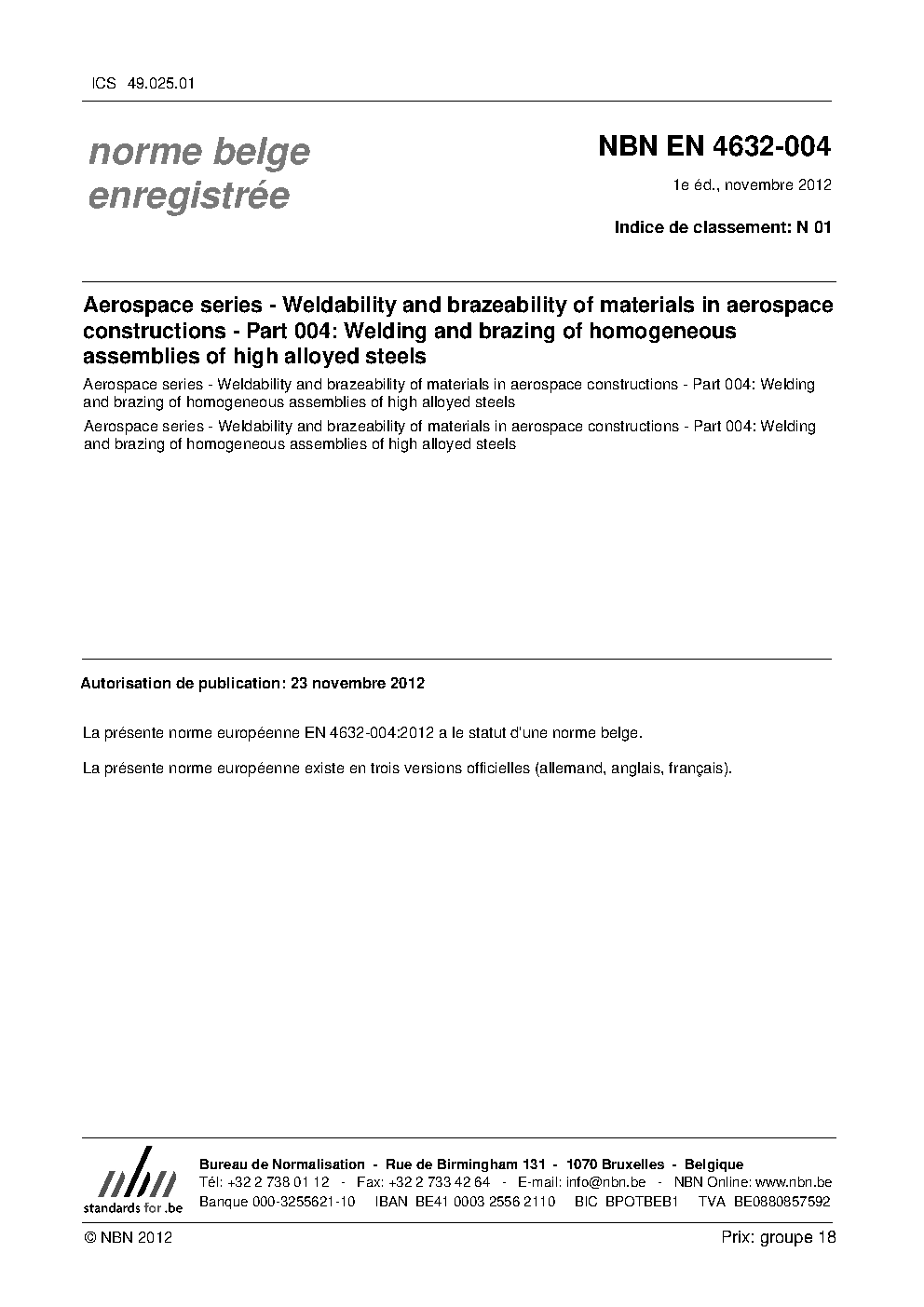 | Publisher | Bureau de Normalisation Belge (NBN) |