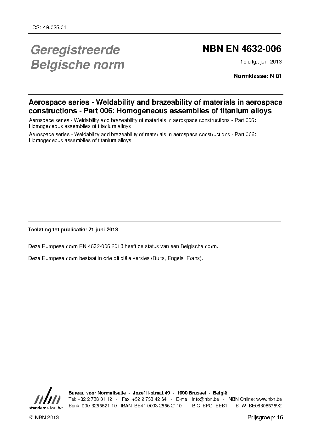 | Publisher | Bureau de Normalisation Belge (NBN) |