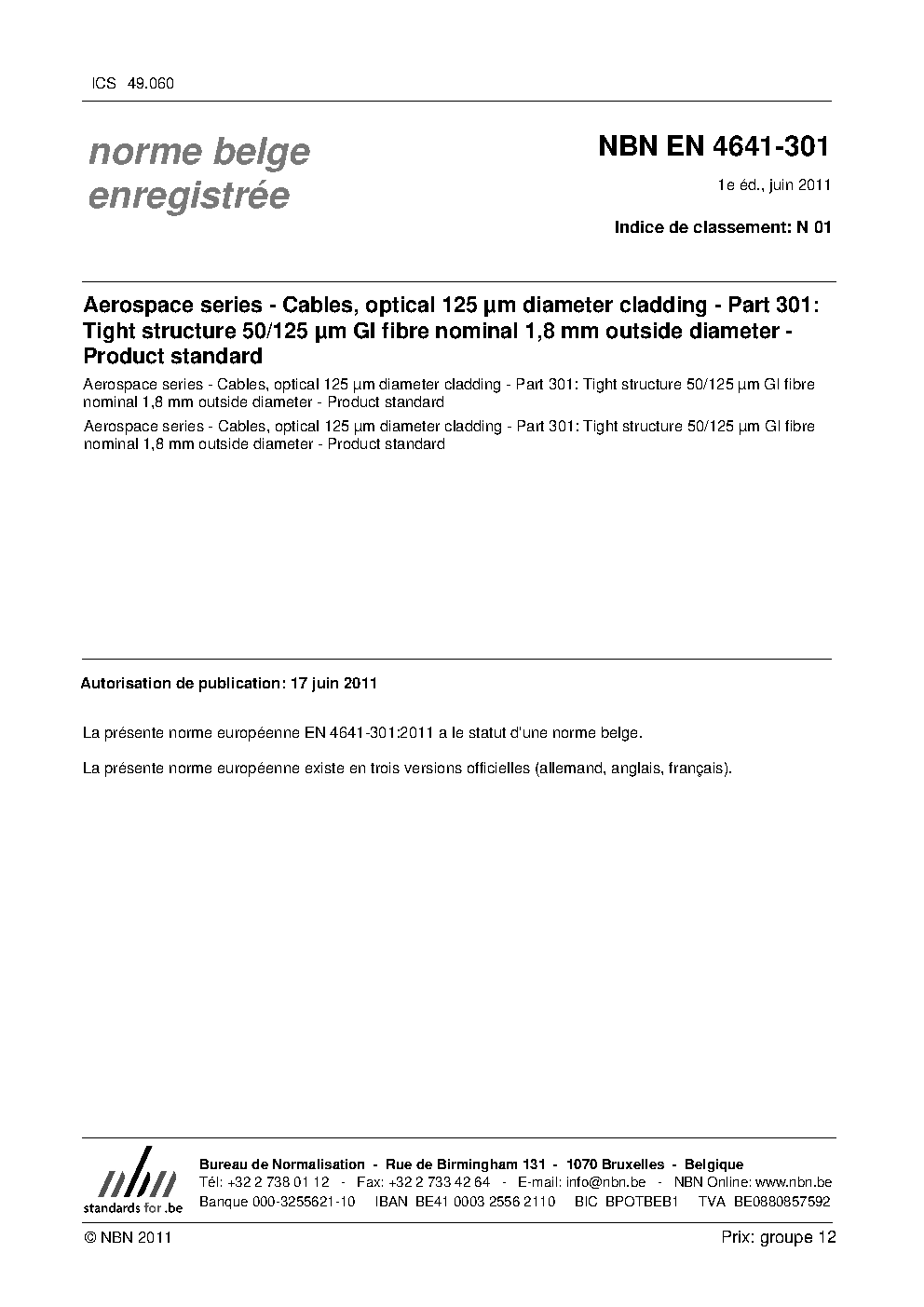 | Publisher | Bureau de Normalisation Belge (NBN) |