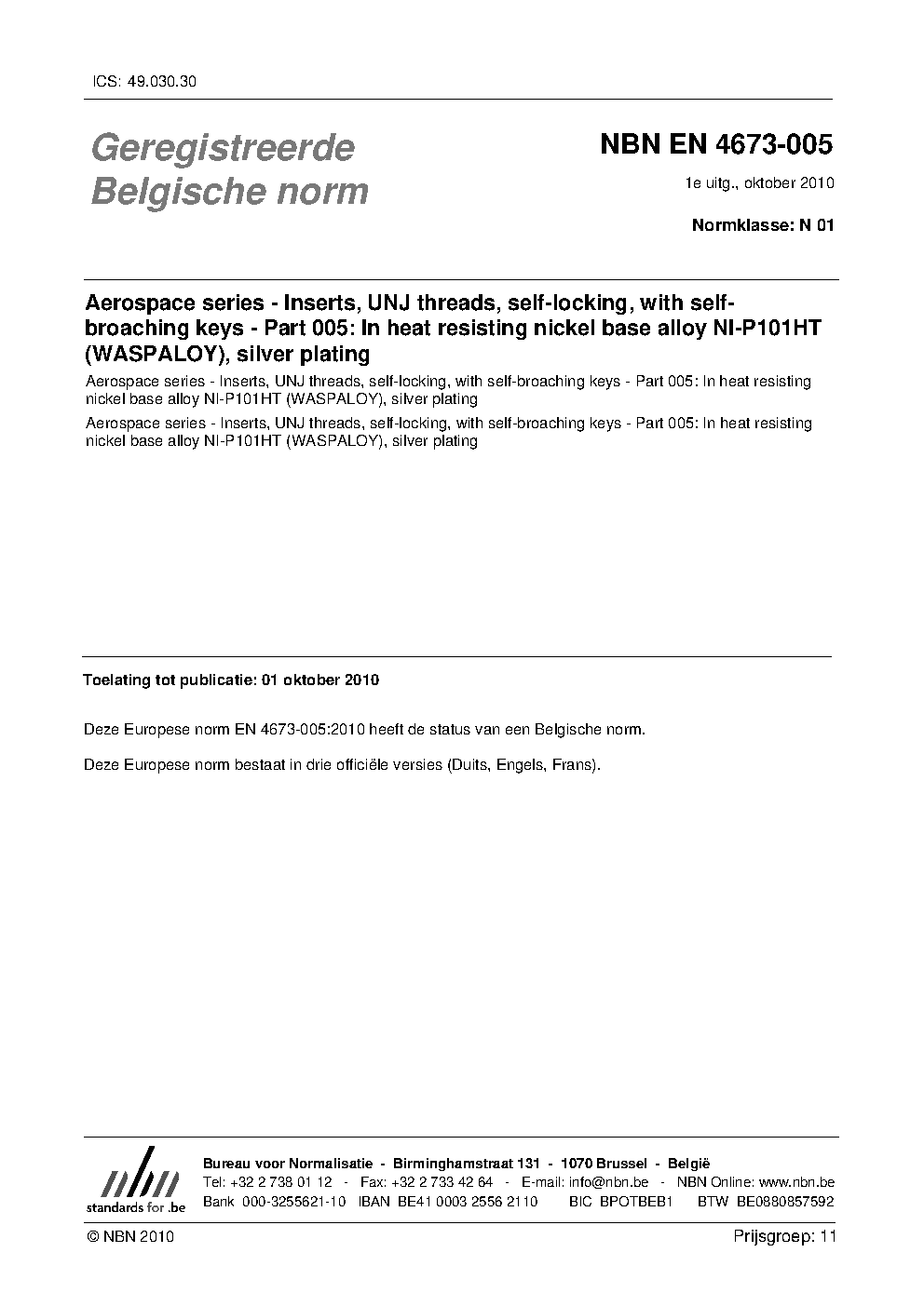 | Publisher | Bureau de Normalisation Belge (NBN) |