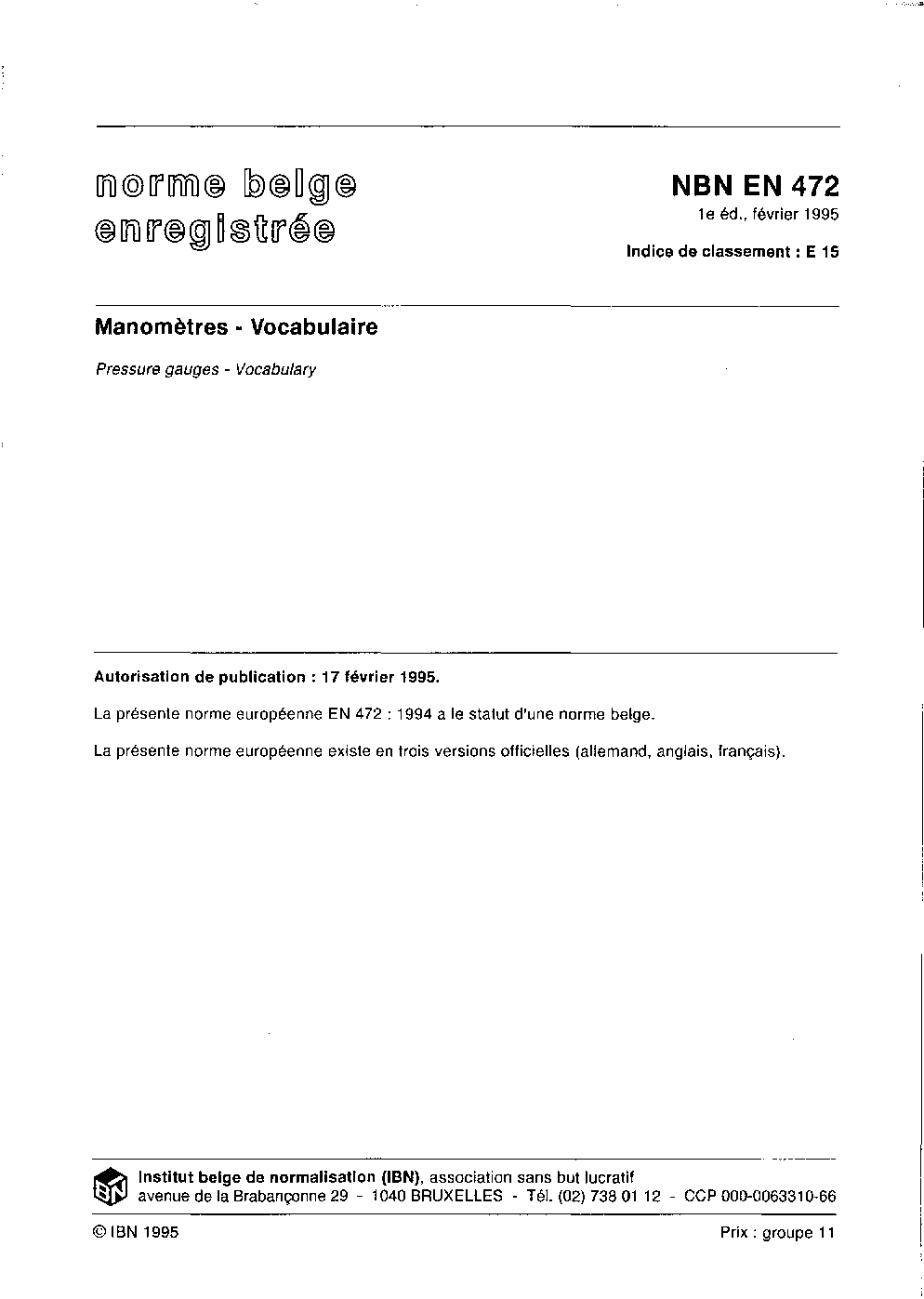 | Publisher | Bureau de Normalisation Belge (NBN) |