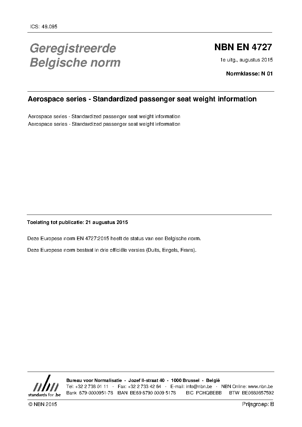 | Publisher | Bureau de Normalisation Belge (NBN) |