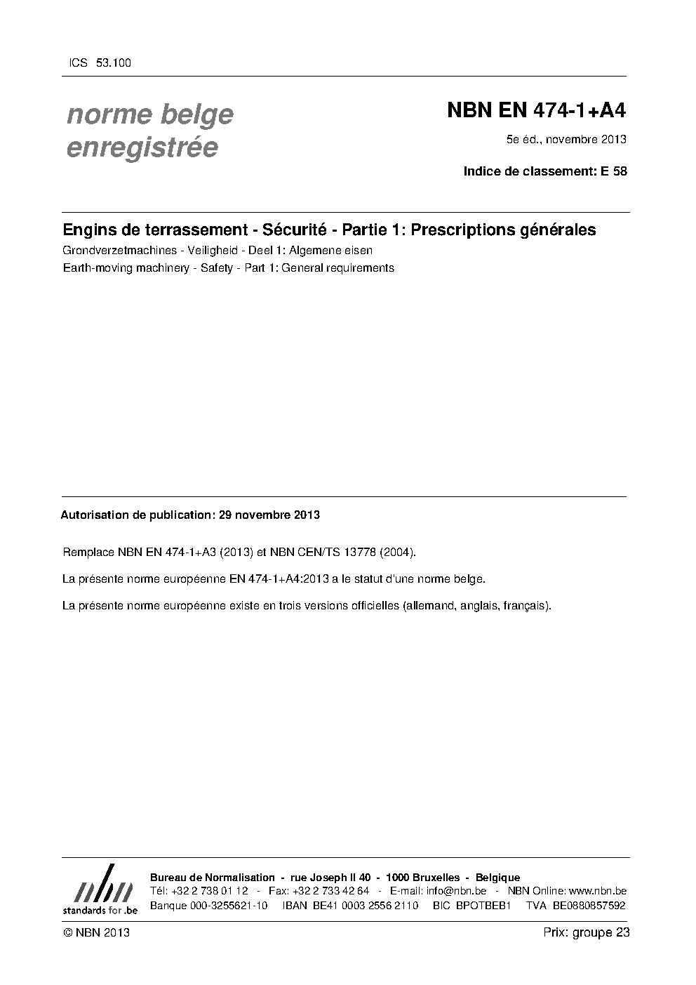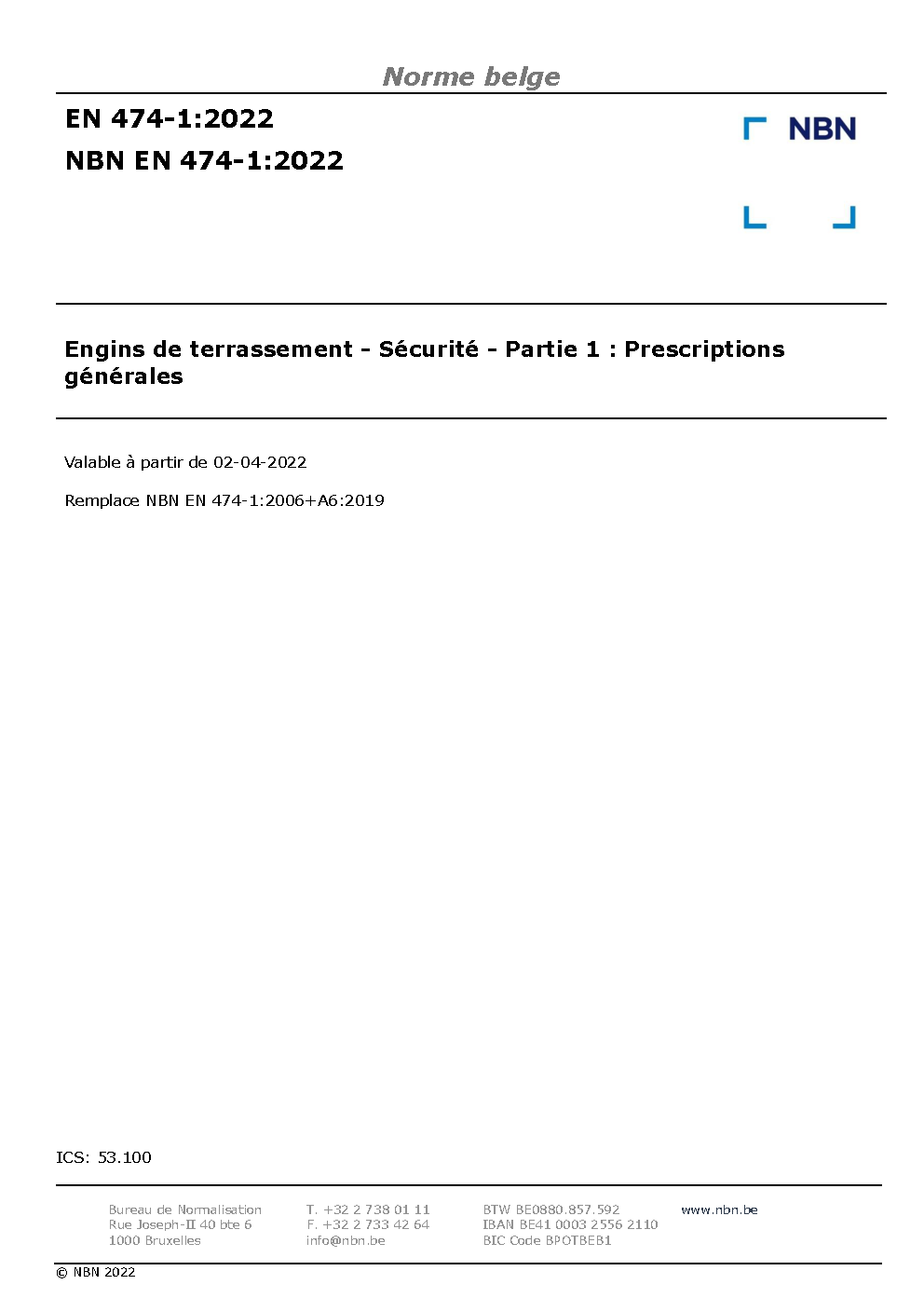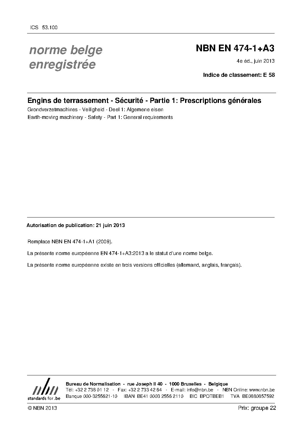 | Publisher | Bureau de Normalisation Belge (NBN) |