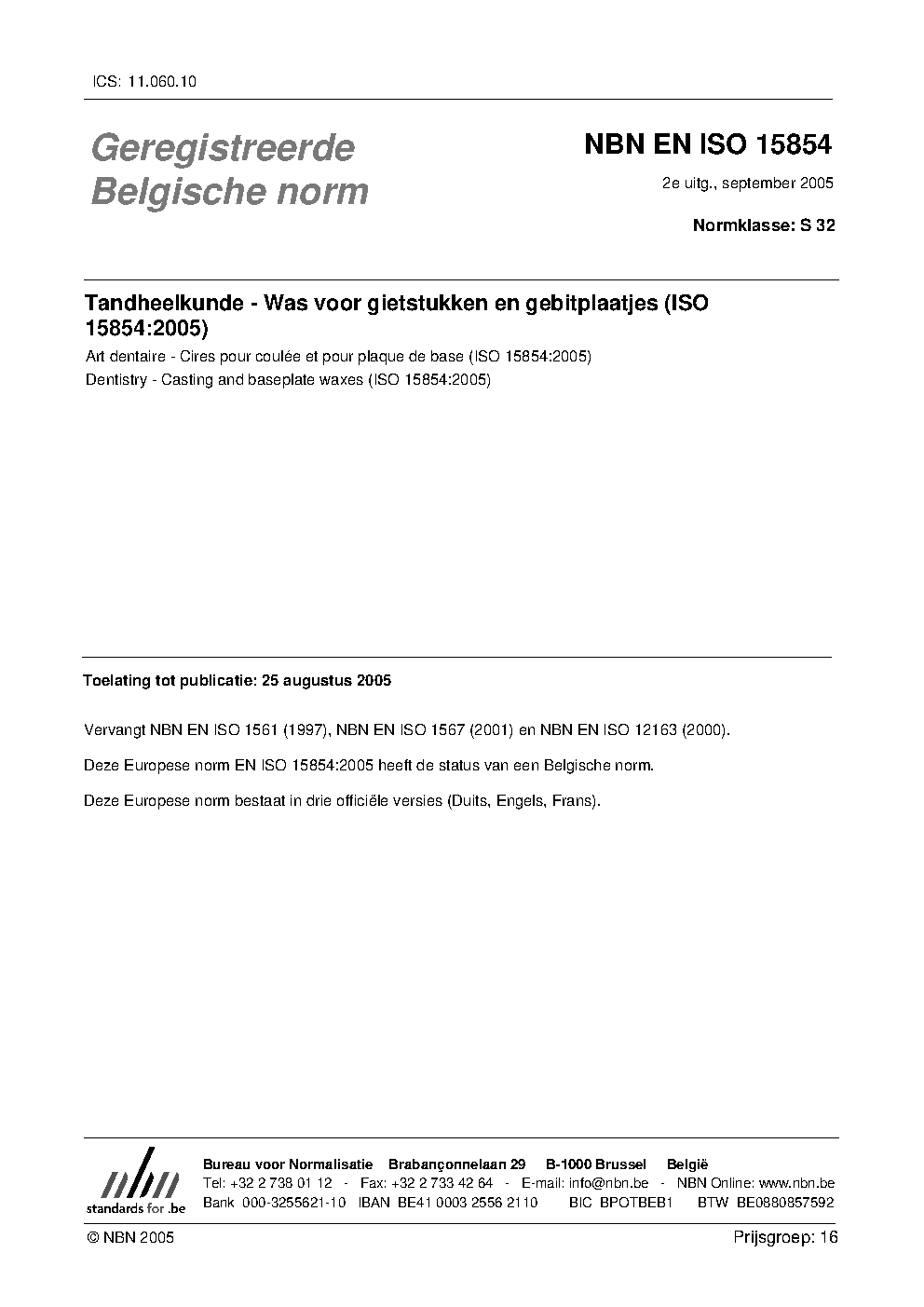 | Publisher | Bureau de Normalisation Belge (NBN) |