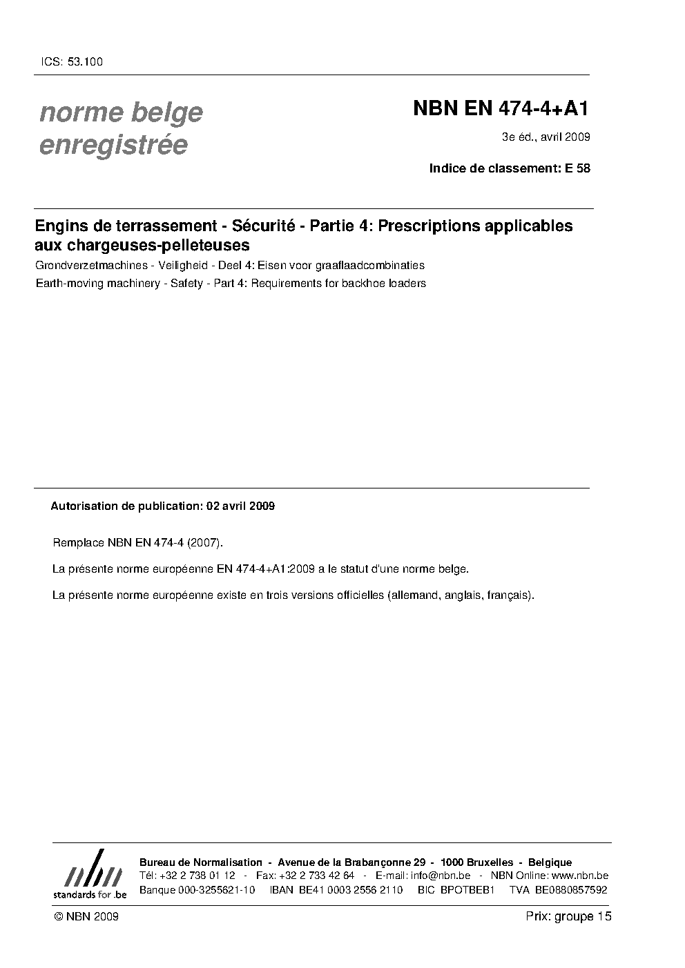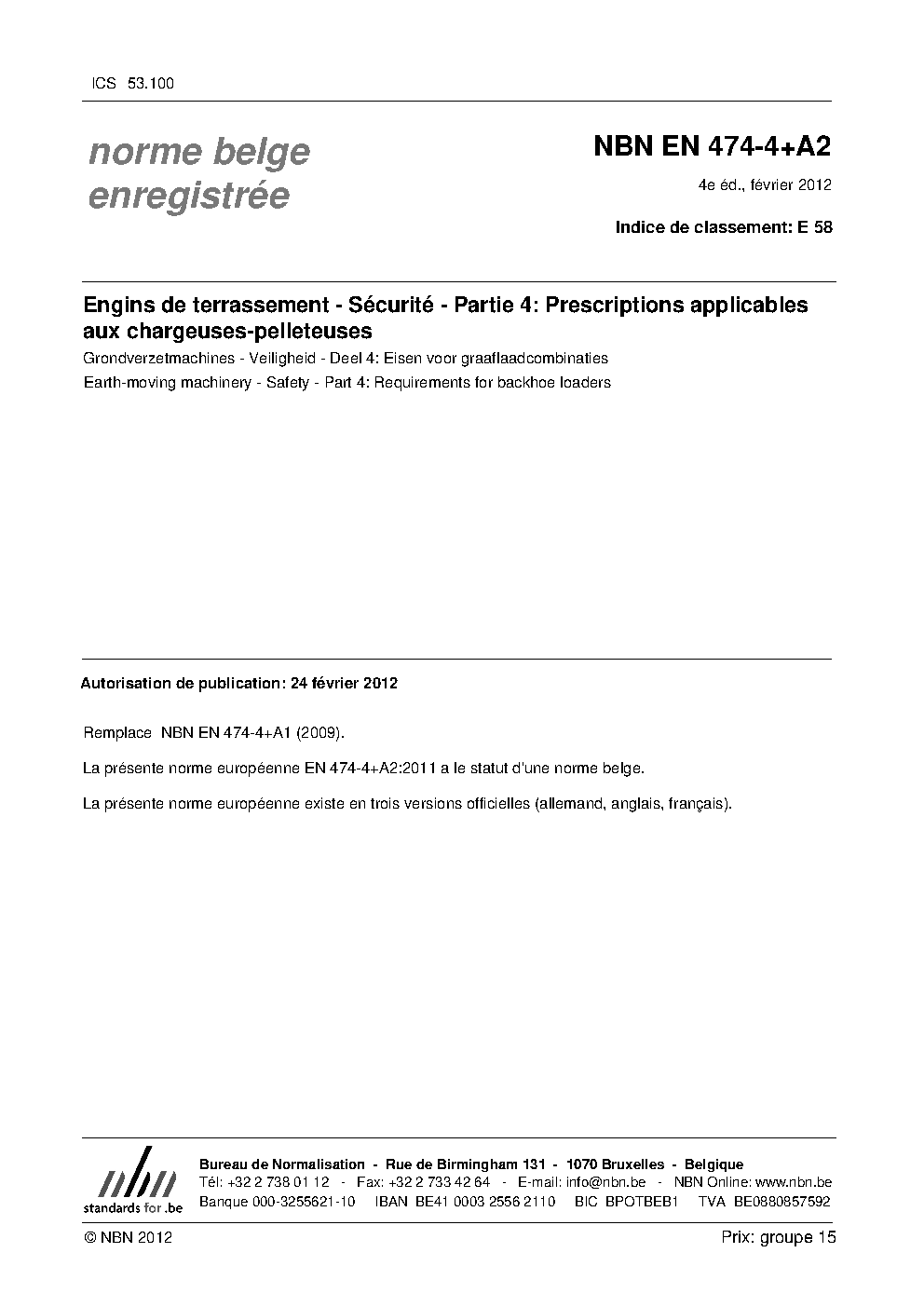 | Publisher | Bureau de Normalisation Belge (NBN) |