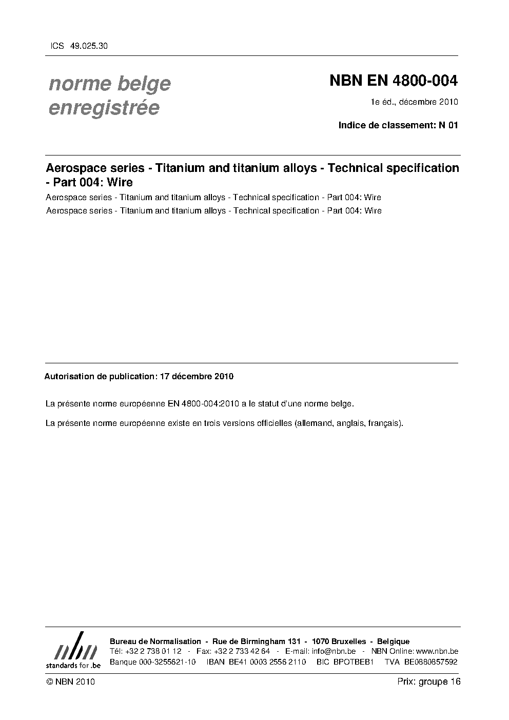 | Publisher | Bureau de Normalisation Belge (NBN) |