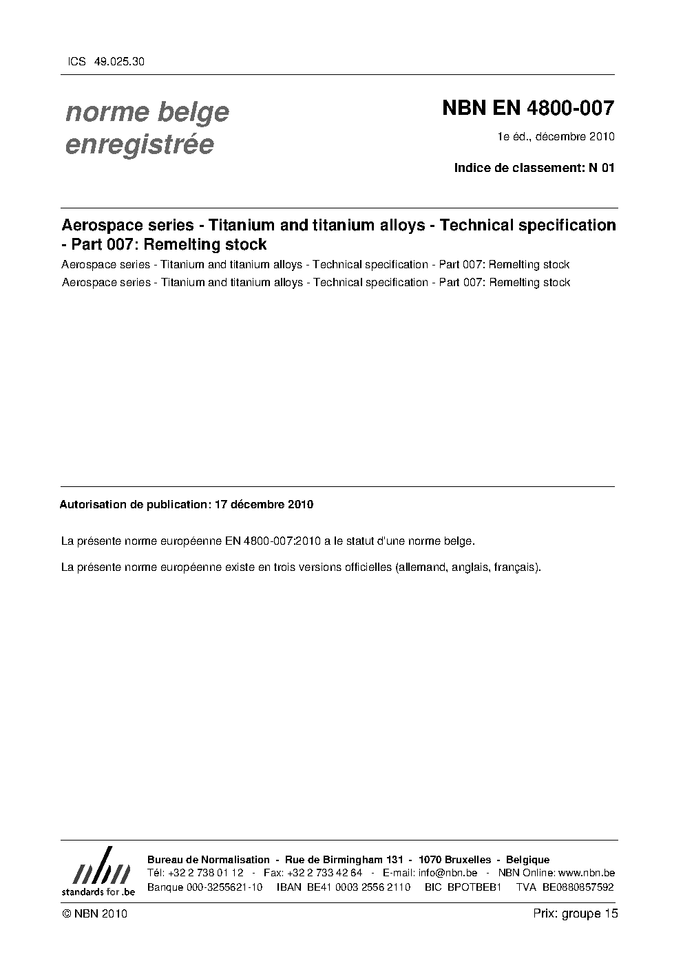 | Publisher | Bureau de Normalisation Belge (NBN) |