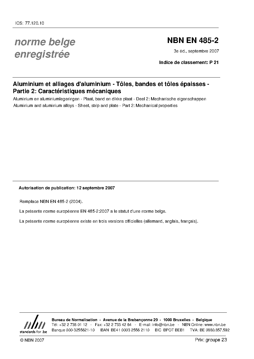 | Publisher | Bureau de Normalisation Belge (NBN) |