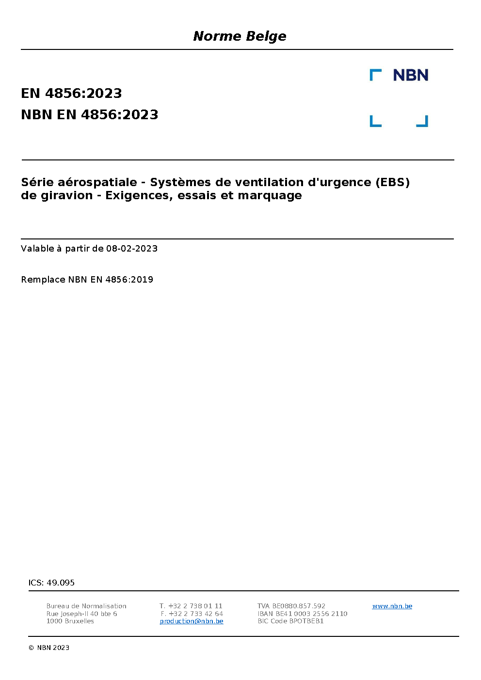 Aerospace series - Rotorcraft Emergency Breathing Systems (EBS) - Requirements, testing and marking