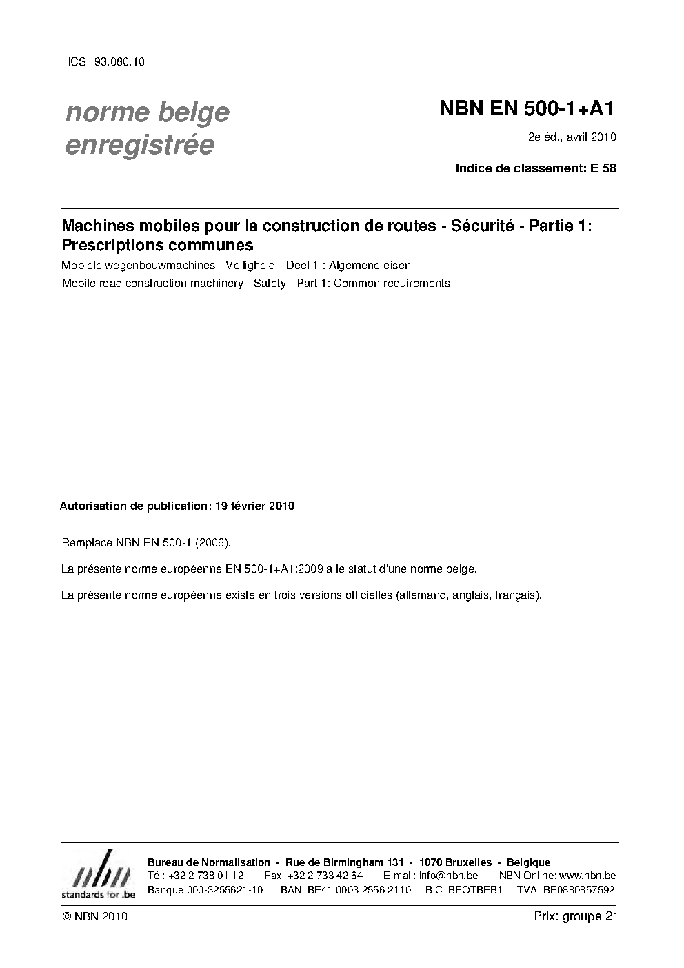 | Publisher | Bureau de Normalisation Belge (NBN) |
