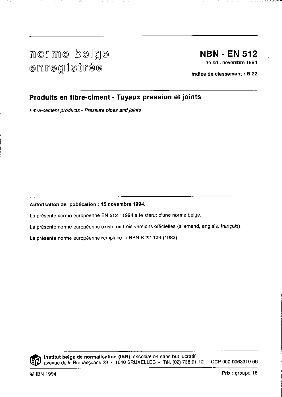 | Publisher | Bureau de Normalisation Belge (NBN) |