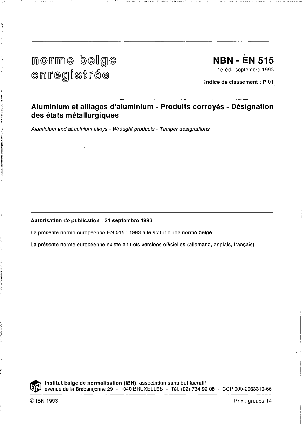 | Publisher | Bureau de Normalisation Belge (NBN) |