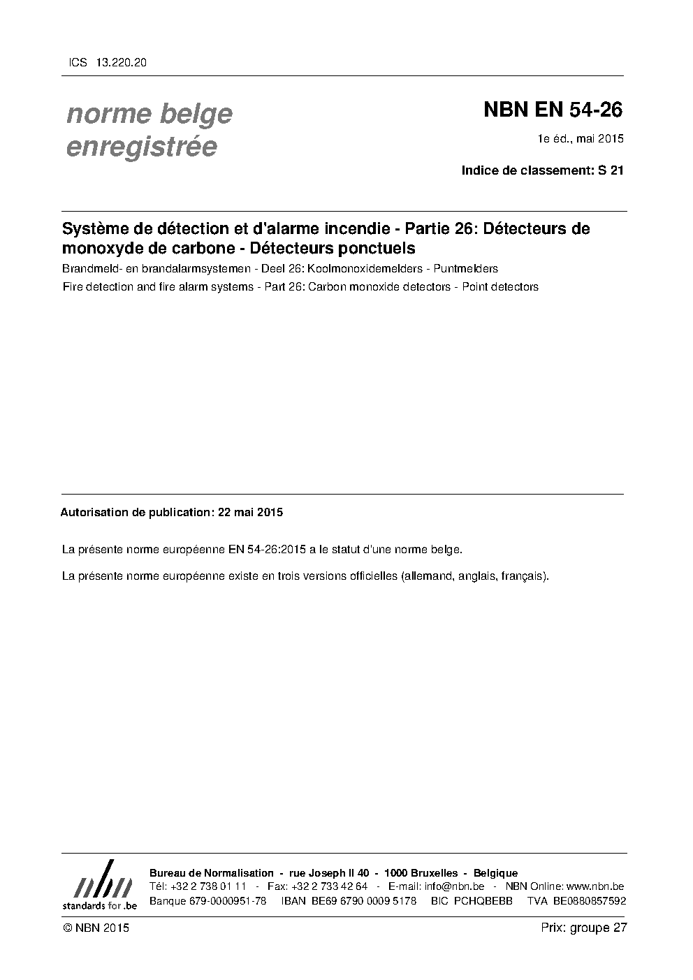 | Publisher | Bureau de Normalisation Belge (NBN) |